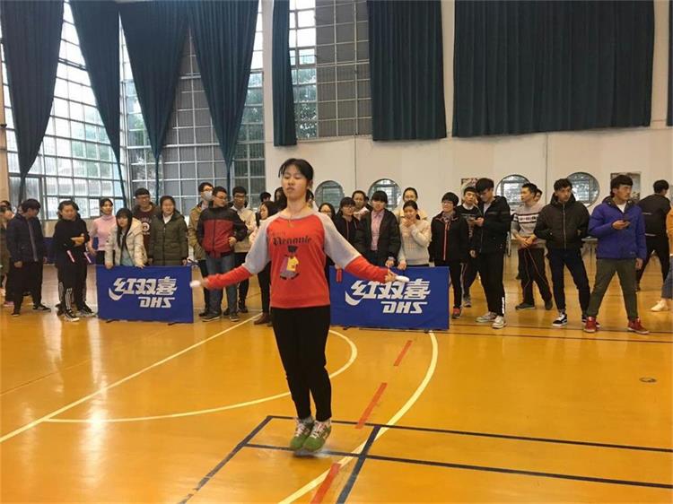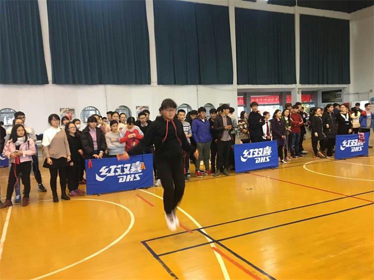 赛场上,跳绳上下翻飞,选手们身手矫健,争分夺秒,各个都发挥自己最大的潜能,专注于比赛。赛场边,观众们也不时地为选手们的精彩表现发出阵阵惊叹与欢呼。本次比赛的顺利举办对营造和谐校园的良好氛围,展现我校大学生良好精神风貌,倡导“全民健身”的体育精神有着积极的意义。