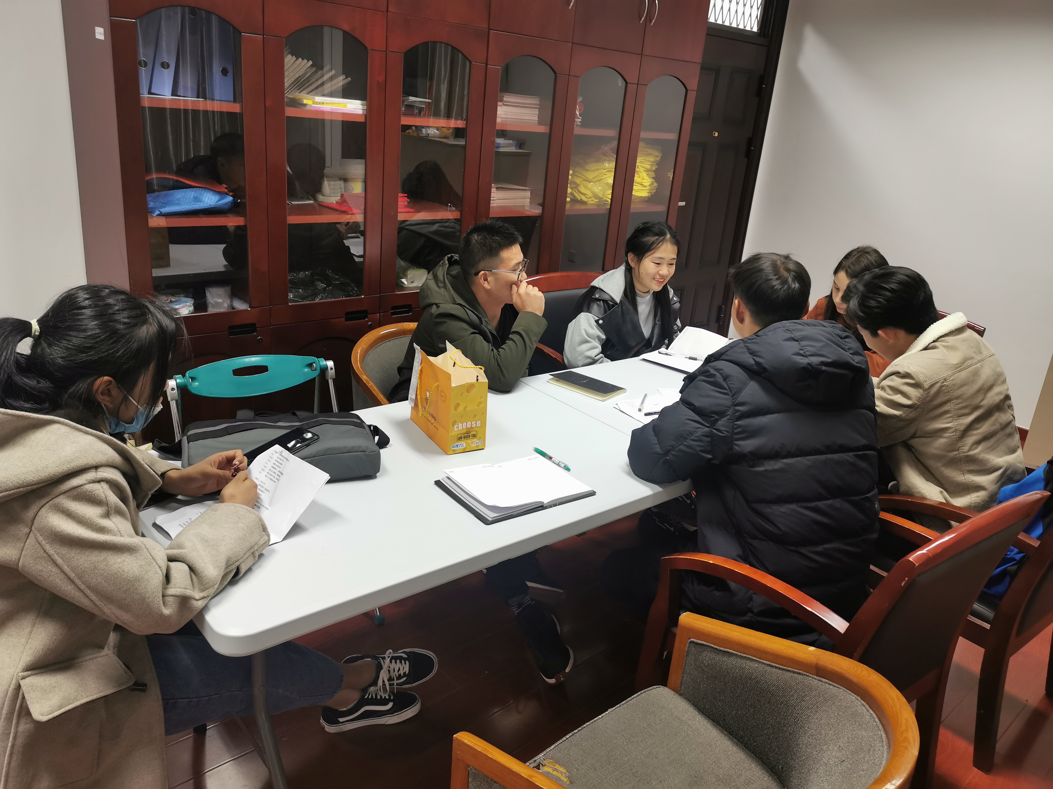 2019年11月20日晚八点,由辅导员努尔老师主持的班级班委例会在大学生活动中心二楼会议室召开,本次例会围绕“一院一品”和经典诵读比赛两个主要内容展开讨论,各班委通过发表自身想法与意见,相互交流。最后在一些活动的具体事实问题上达成了一致。