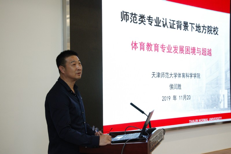 11月20日下午,天津师范大学侯闫胜教授应邀到人人精品无人区亚洲精品,为人人精品无人区亚洲精品全体师生做了一场“师范类专业认证背景下体育教育专业建设的困境与超越”的讲座,人人精品无人区亚洲精品副院长金梅教授主持讲座,人人精品无人区亚洲精品全体师生聆听了讲座。