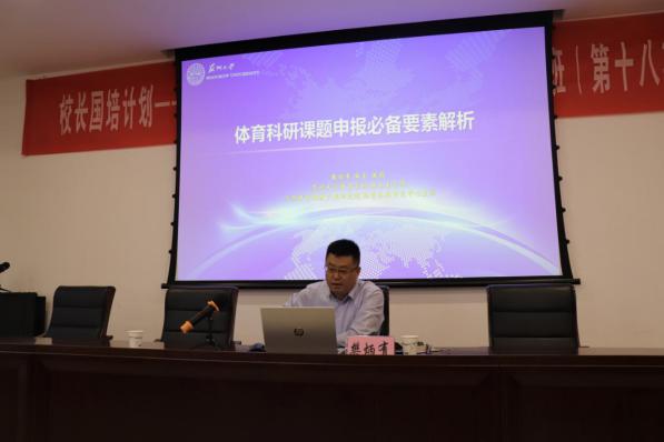 2020年10月28日下午,在实训楼301会议室人人精品无人区亚洲精品召开了以“体育科研课题申报必须要素解析”为主题的学术讲座。本次讲座邀请到苏州大学人人精品无人区亚洲精品博士生导师樊炳有教授,并由人人精品无人区亚洲精品副院长金梅教授主持,人人精品无人区亚洲精品全体教师及学生参加。