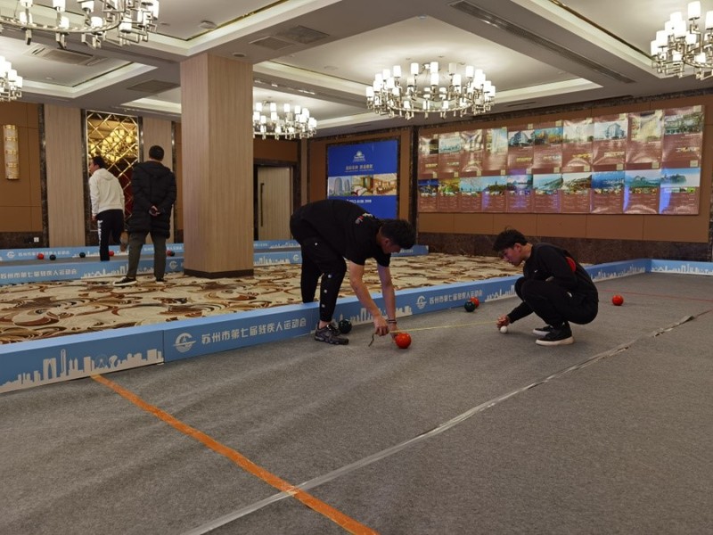 苏州市第七届残疾人运动会——特奥硬地滚球比赛于2020年12月7-8日在苏州市相城区辅特戴斯酒店举行,本次赛事由苏州市残疾人联合会主办,苏州市残疾人活动中心、苏州市智力残疾人亲友会、苏州市残疾人体育协会承办,吸引了苏州各区县9支残联代表队,男女运动员、教练员、领队近一百人参加。