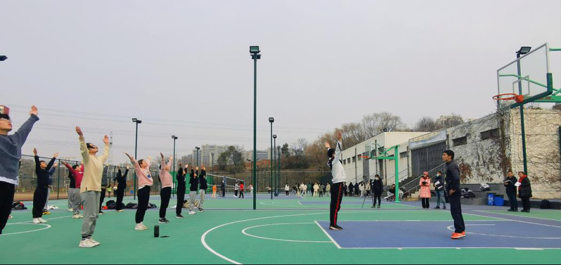 课程伊始,陈晶老师先以每一节广播体操的复习为主,要求学生主动领操,提高同学们的示范能力及主动承担任务的勇气和责任心,并在音乐合拍的过程中,提高全体学生动作的同步性和协同合作的意识。随后进行体操队列队形练习,在陈晶老师标准嘹亮的口令指挥下,同学们领会并逐步建立正确的身体姿态和协同一致的集体主义品质。