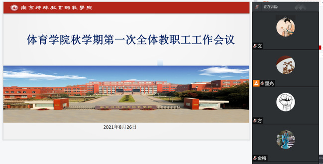 暑期各项工作不放松。最后,金梅副院长就暑期各项工作进行了总结,包括本科教学工作合格评估自评报告的撰写、学院“十四五”发展规划的撰写、田径场、足球场等场地改造、迎评支撑材料的准备、专任教师招聘、本科新设专业评估专题培训等,并传达了学校疫情防控会议精神。张启昕书记就暑期实践的开展情况与实践成果进行了总结。