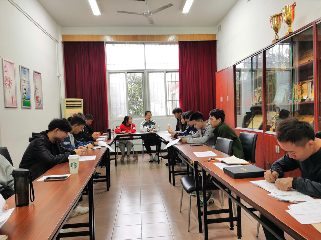 首先,屈老师就本学期团学工作计划与经费预算进行了全面梳理,并对学生会成员提出了五点期望与建议:一是有准备;“凡是预则立,不预则废”“机会总是赋予有准备的头脑”,参与每次会议或活动,做好充足的准备,包含熟知会议或活动要求、理清会议或活动思路等,是首要元素。二是有策划;任何活动,特别是体育赛事的举办,不能停留于“头脑风暴”,更需要第一时间形成策划方案。三是有交流;学生会全体干部应加强交流,不仅仅局限于部门内部的交流,更应当走出去,学习其他二级学院的先进经验与做法,扬长避短,取长补短。四是有规范;接下来,制定学院学生会系列制度是当务之急,包括各部门职责与分工、学生会例会制度等。五是有执行力;期望全体干部起于行,砺于行,止于行,各部门加强协作,结合学院特点、学生特点,促进各项工作计划尽快落地生根。