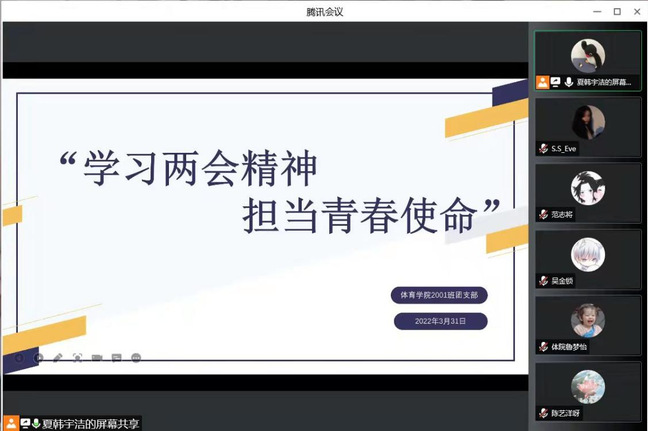 为贯彻落实习近平总书记两会期间重要讲话精神和全国两会精神,聚焦全国两会动态,热议政府工作报告,以更加昂扬的奋斗姿态迎接党的二十大胜利召开,人人精品无人区亚洲精品团总支于4月7日开展“学习两会精神,担当青春使命”主题团日活动,人人精品无人区亚洲精品全体学生参会。