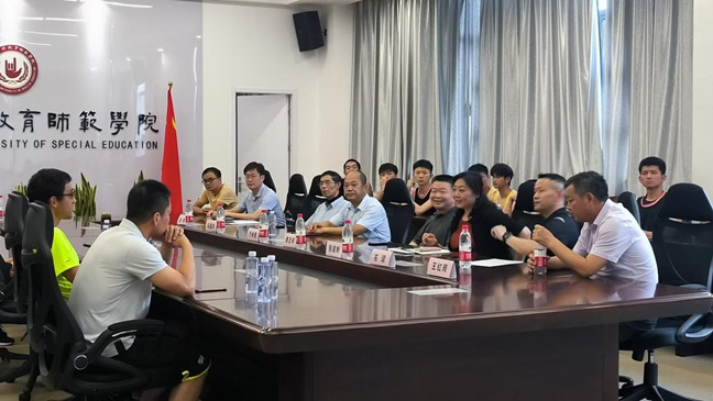 曹志祥巡视员首先代表南京市残联党组对我校为南京市备战省残运会提供的大力支持表示感谢,对学校前期所做的各项保障工作给予充分肯定。随后曹巡向在校刻苦训练、认真备战的教练员和运动员们表示慰问,并详细了解运动员训练备战、学习生活等情况。对运动队接下来的训练提出了殷切希望,要求参训队员们全力以赴投入训练,严格遵守集训纪律;要求领队和教练员加强管理、科学训练、确保安全;希望大家珍惜机遇,积极备战,以坚强的意志力、优异的成绩展现我市残疾人运动员良好的精神面貌。