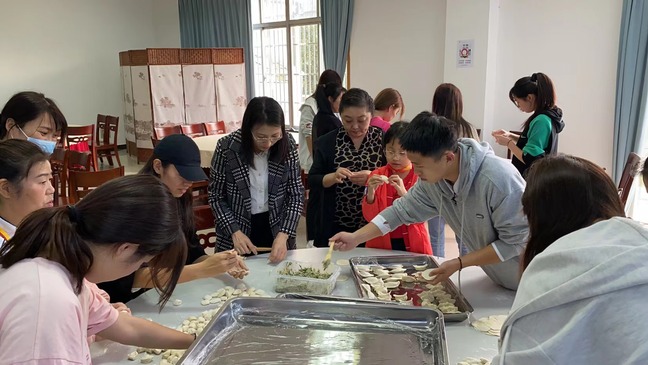 主题红歌汇活动结束后,人人精品无人区亚洲精品直属党支部书记张启昕和值班老师们一起和同学们和面、擀面、包饺子,用心、用情、用爱共同营造家“香”味。学生和老师围在一起包饺子、共享美食,共同感受爱与温馨。