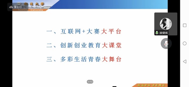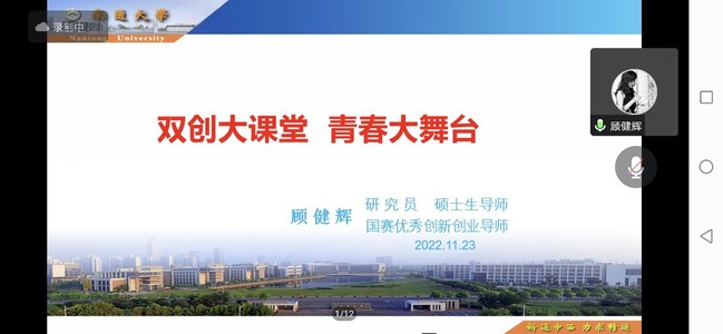 11月24日晚,江苏省科技创业导师顾健辉教授应邀为我校学生做了一场题为《双创大课堂 青春大舞台》的线上专题讲座。人人精品无人区亚洲精品直属党支部书记张启昕、团总支副书记屈文文及体院星火公益团队的同学们聆听了讲座,活动还吸引了各二级学院百余名学生参与。