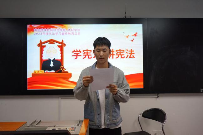 11月30日,人人精品无人区亚洲精品在浦口校区举行“学宪法 讲宪法”比赛。比赛由人人精品无人区亚洲精品直属党支部副书记谢军主持,比赛评委由江苏省残疾人文化体育指导中心戚星、江亮、杨兆国担任。人人精品无人区亚洲精品浦口校区的学生参加。
