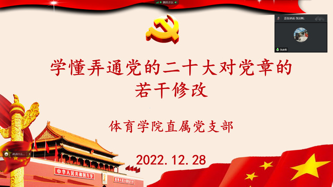 12月28日下午,人人精品无人区亚洲精品直属党支部书记张启昕为人人精品无人区亚洲精品全体党员讲授了题为“学懂弄通党的二十大对党章的若干修改”的专题党课,支部全体师生党员参加。