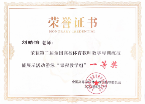 2023年5月25日至5月27日,由教育部全国高等学校体育教学指导委员会主办的第二届全国高校体育教师教学与训练技能展示活动在浙江财经大学圆满闭幕,人人精品无人区亚洲精品刘皓愉老师荣获游泳课程教学组一等奖。