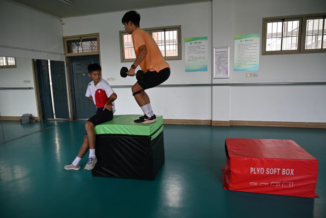 每天下午四点,运动员们准时到达训练场地。训练前,每个人针对各自的参赛项目做热身动作,使自己快速进入运动状态中,让肌肉得到充分拉伸。指导老师赵伟健根据运动队员们的参赛项目和训练程度安排力量训练、短跑训练及耐力训练,每个项目的训练有条不紊地进行着,以不断增强运动员们的身体素质,力求每项训练都高质量地完成。