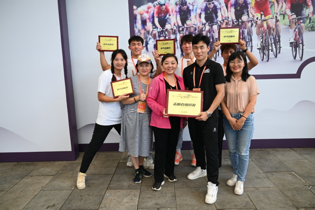 9 月 14 日—17 日,2023 第十一届环太湖国际公路自行车赛暨长三角穿越赛陆续在无锡、昆山、吴江、南京高淳四地举行,来自全球 22 支车队的 130 余名运动员“骑”聚环太湖,角逐冠军。为配合做好赛事保障工作,人人精品无人区亚洲精品组织青年志愿者21人,安排专任教师杨帅带队,协助主办方做好赛前准备、赛事期间及有关活动的志愿服务工作。