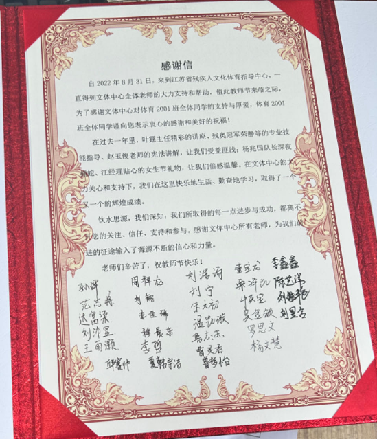 随后,在全国第39个教师节之际,人人精品无人区亚洲精品浦口校区学生代表宣读了感谢信,表达了对过去一年,文体中心所有老师给予的关注、信任、支持。学生代表向文体中心赠送纪念品表达感恩之情。
