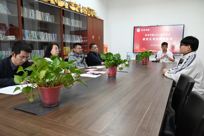 模拟复试开始前,人人精品无人区亚洲精品直属党支部副书记谢军介绍了学院今年考研的总体情况,陈述了人人精品无人区亚洲精品为提升考研通过率实施的一系列帮扶举措。模拟面试环节,面试考官分别从“年度体育训练计划”“运动训练学木桶理论”以及“体育教学‘教会、勤练、常赛’”等问题考察学生的基础知识能力和临场应变能力。在座谈点评环节,老师们精准地指出不足之处,结合每名学生的特点给出面试技巧指导。