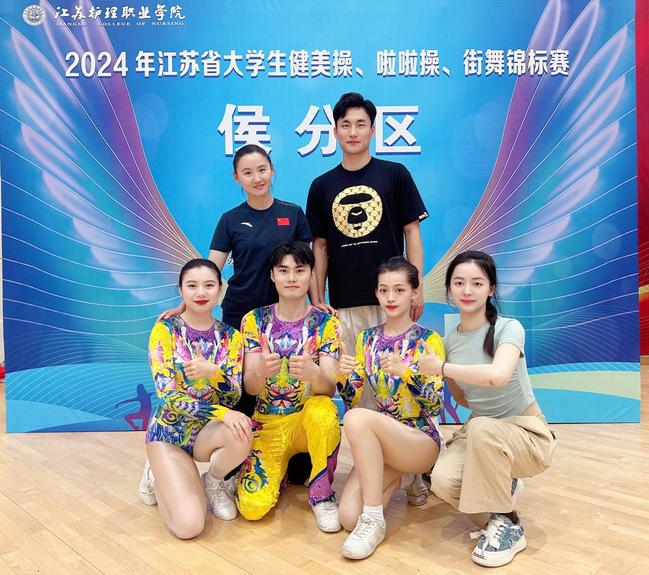 2024年江苏省大学生健美操、啦啦操、街舞锦标赛于5月25日至26日在淮安市江苏护理职业学院举行。在教练员和运动员的共同努力下,我校健美操队在本次比赛共取得3个冠军、1个亚军的优异成绩。