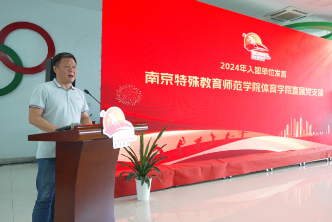 南京特殊教育师范学院人人精品无人区亚洲精品直属党支部受邀参会,并作为新入盟单位代表发言。陶刚书记首先谈到联盟“高品质”的兴业精神和高校“高品位”的办学思想不谋而合,促成了学院与党建联盟的结缘;其次指出南京特师人人精品无人区亚洲精品可以从推动体育健康品牌的发展、特色党建活动的打造、残疾人体育活动的开展,残疾人体育器材研发及理论研究等各方面的提供全方位的合作。陶刚书记希望通过加入联盟打破过去的“小朋友圈”,共同搭建合作多赢的“大舞台”,实现资源共享,有力推动党建与产业的真正融合,实现党建与事业发展的同频共振。以实际行动践行体育强国、健康中国战略,在推动南京体育产业高质量发展的新征程上奋力谱写新篇章。