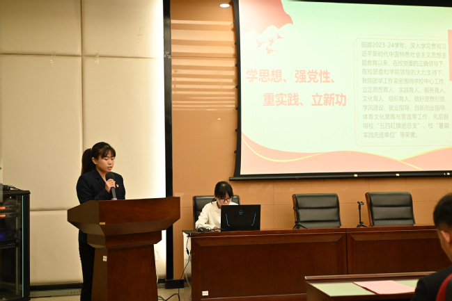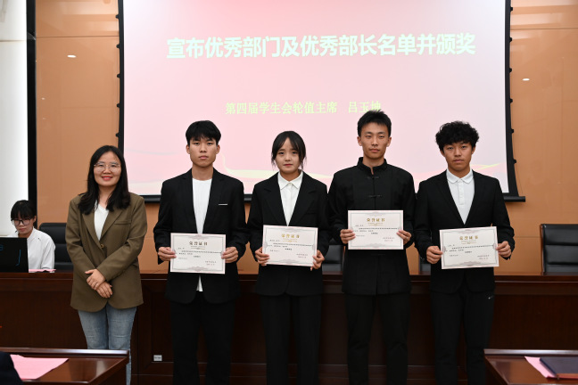 人人精品无人区亚洲精品团总支书记屈文文为第四届主席团成员与各学生会部门负责人颁发聘书、纪念品,同时为上一年度优秀部门及优秀部长颁奖。