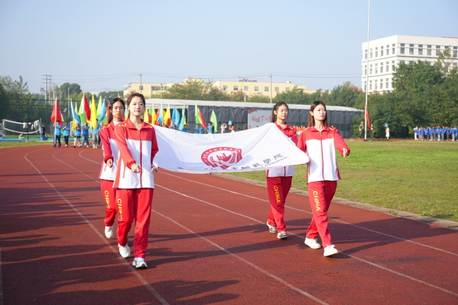 伴随着激昂的《运动员进行曲》,国旗队、彩旗队、鲜花队、裁判员方阵、各学院代表队迈着矫健的步伐依次走过主席台。各学院入场方阵的体育文化展演律动活跃,充满青春气息,也充分展现出南特学子积极向上的精神面貌。