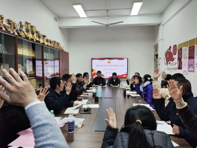 在预备党员答辩环节,王腾、吉鸿宇两位同志分别向党组织陈述了预备期一年来学习、工作情况。随后,与会正式党员对王腾、吉鸿宇两位同志进行理论知识提问。王腾、吉鸿宇两位同志回答思路清晰、内容准确。与会正式党员一致同意王腾、吉鸿宇两位同志通过转正答辩。