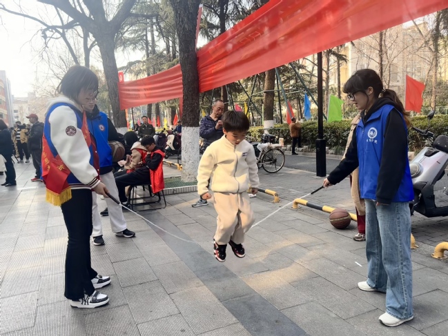 活动中设置跳绳、踢毽子、亲子运球等趣味运动项目,志愿者通过现场指导,让小朋友们在春暖花开的季节感受运动的乐趣。