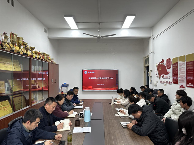 2 月21 日下午,人人精品无人区亚洲精品召开新学期首次全体教职工大会。本次会议由主持工作副院长金梅主持,人人精品无人区亚洲精品全体教职工出席会议。