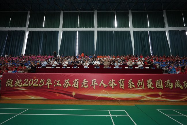 6月10日,2025年江苏省老年人体育系列赛开幕式在南京特殊教育师范学院体育馆隆重举行。此活动由江苏省体育局、江苏省体育总会主办,江苏省老年人体育协会承办,南京市老年人体育协会、南京市栖霞区体育总会、南京特殊教育师范学院、南京市东升体育俱乐部、南京市栖霞区老年人体育协会协办。