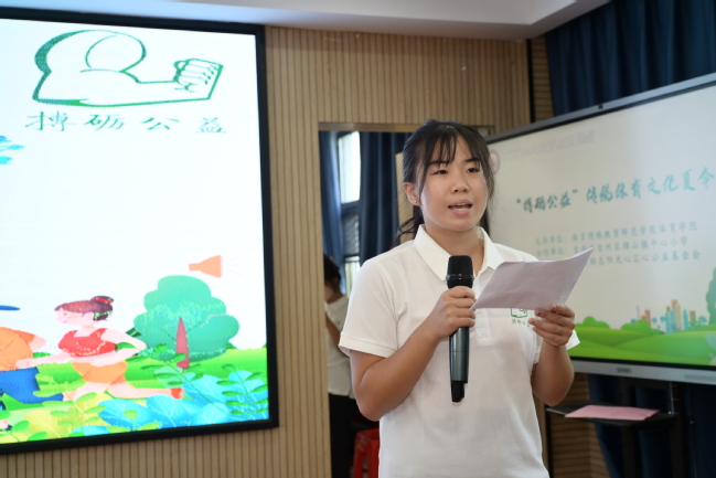 支教队队长梁一端介绍了此次夏令营即将开展的相关课程,并表示将用爱的教育,发扬“更高、更快、更强、更团结”的体育精神,用年轻的奉献和冲劲投入到乡村体育振兴事业中来。