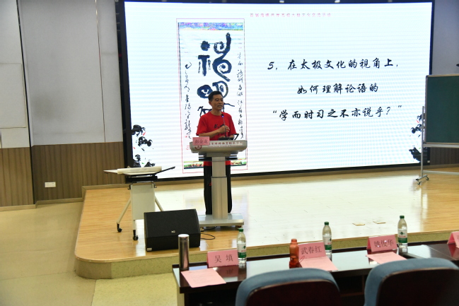 在专题研讨环节,与会嘉宾围绕太极文化传承与创新、无极轮发展等议题展开深入对话,现场气氛热烈。江苏省周易文化研究会理事、江苏省老年学学会理事、江苏省大众书画院副院长彭金龙,带来了《太极文化与养生智慧》专题讲座,他阐述了在太极一招一式中所蕴藏的身心平衡之道;非物质文化遗产“发泡灸”项目传承人、南京惠仁谷中医门诊部负责人姚俊华,讲授了《太极与中医:传统文化的守护与践行》;邯郸市原体委主任、杨氏太极拳和武氏太极拳第五代传人、太极大师赵海鑫教练,热情洋溢地讲解了无极轮“圆融贯通”的运动魅力!