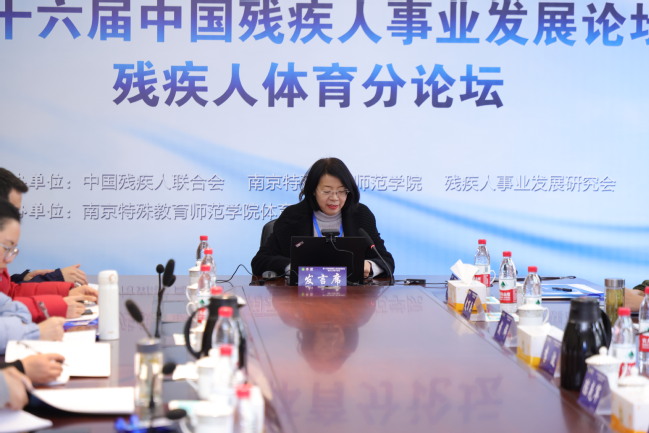 2022年12月1日至2日,由中国残联、南京特殊教育师范学院、残疾人事业发展研究会共同主办的第十六届中国残疾人事业发展论坛,以“提升残疾人发展能力、促进残疾人共同富裕”为主题,以南京特殊教育师范学院为主会场,通过线上线下的方式进行。其中,12月2日下午举办的分论坛七“加快建设体育强国,推动残疾人体育高质量发展”由我校人人精品无人区亚洲精品承办,线下会场设在实验实训大楼203。我校党委常委、副校长陈克军教授致辞,人人精品无人区亚洲精品副院长(主持工作)、教授金梅主持。